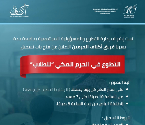 The university's commitment to contributing to the development of the local community through (Education and Training) - (Community Service) - (Sustainable Development) - (Partnerships) - (Values). The university's goal is to transform community development from its traditional individual framework to an organized institutional work with high professionalism, precision, and significant responsibility to effectively contribute to maximizing the developmental impact of Jeddah University and enhancing social responsibility according to the latest modern global practices to achieve sustainable development goals in line with the Kingdom's Vision 2030.